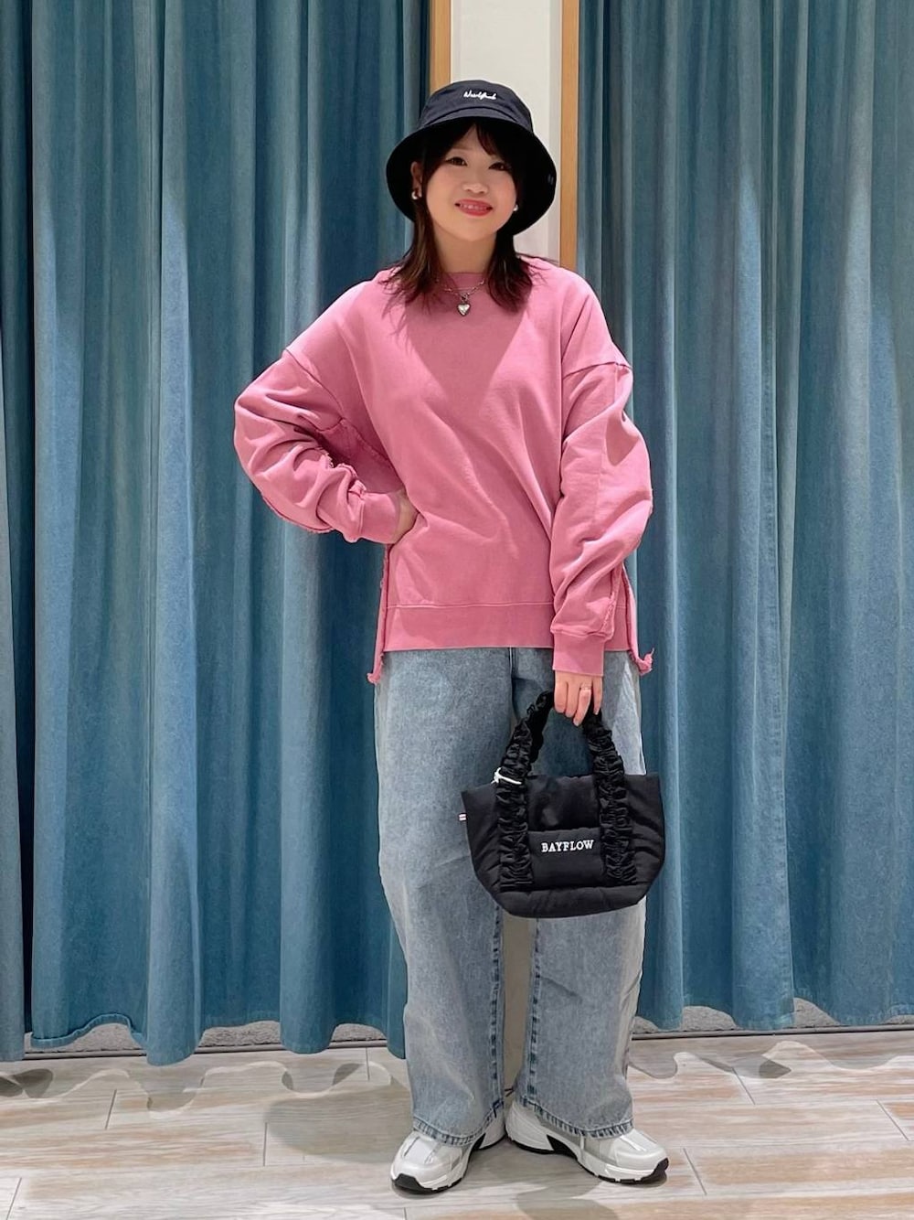 akari(BAYFLOW モレラ岐阜)のハット「LIKEYEETロゴツイルハット」を使ったコーディネート