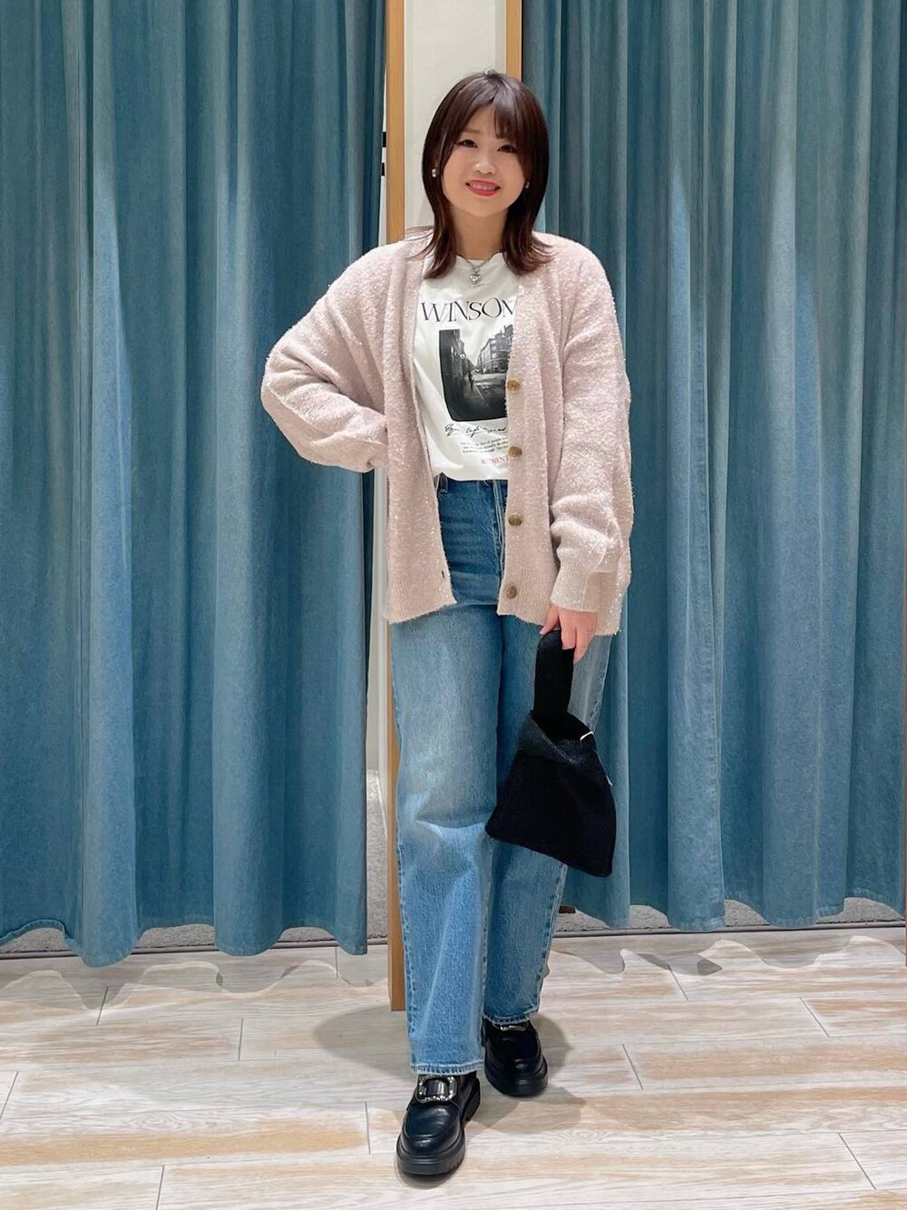 akari(BAYFLOW モレラ岐阜)のTシャツ/カットソー「[シルキータッチの肌触り]アソートロゴロングスリーブT」を使ったコーディネート
