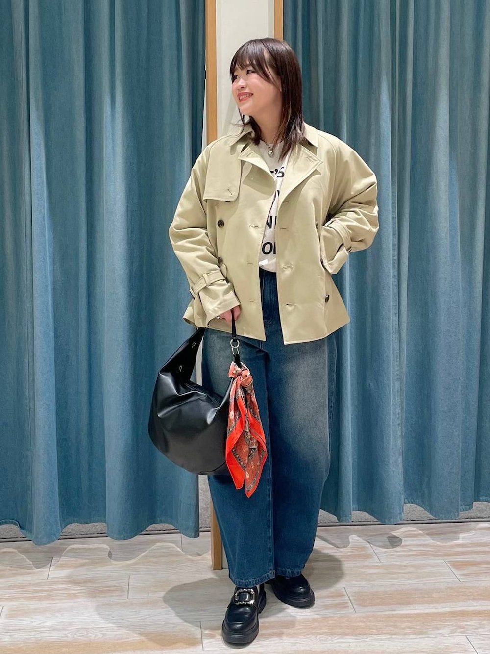 akari(BAYFLOW モレラ岐阜)のトレンチコート「[選べる着丈]ショートトレンチコート」を使ったコーディネート