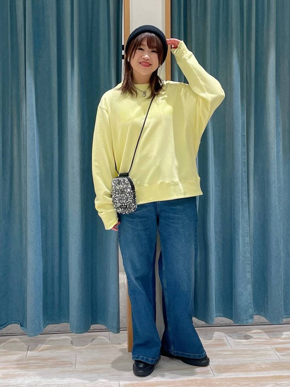 akari(BAYFLOW モレラ岐阜)のショルダーバッグ「[スマホ・カード収納可♪]多機能スパンコールミニショルダー」を使ったコーディネート