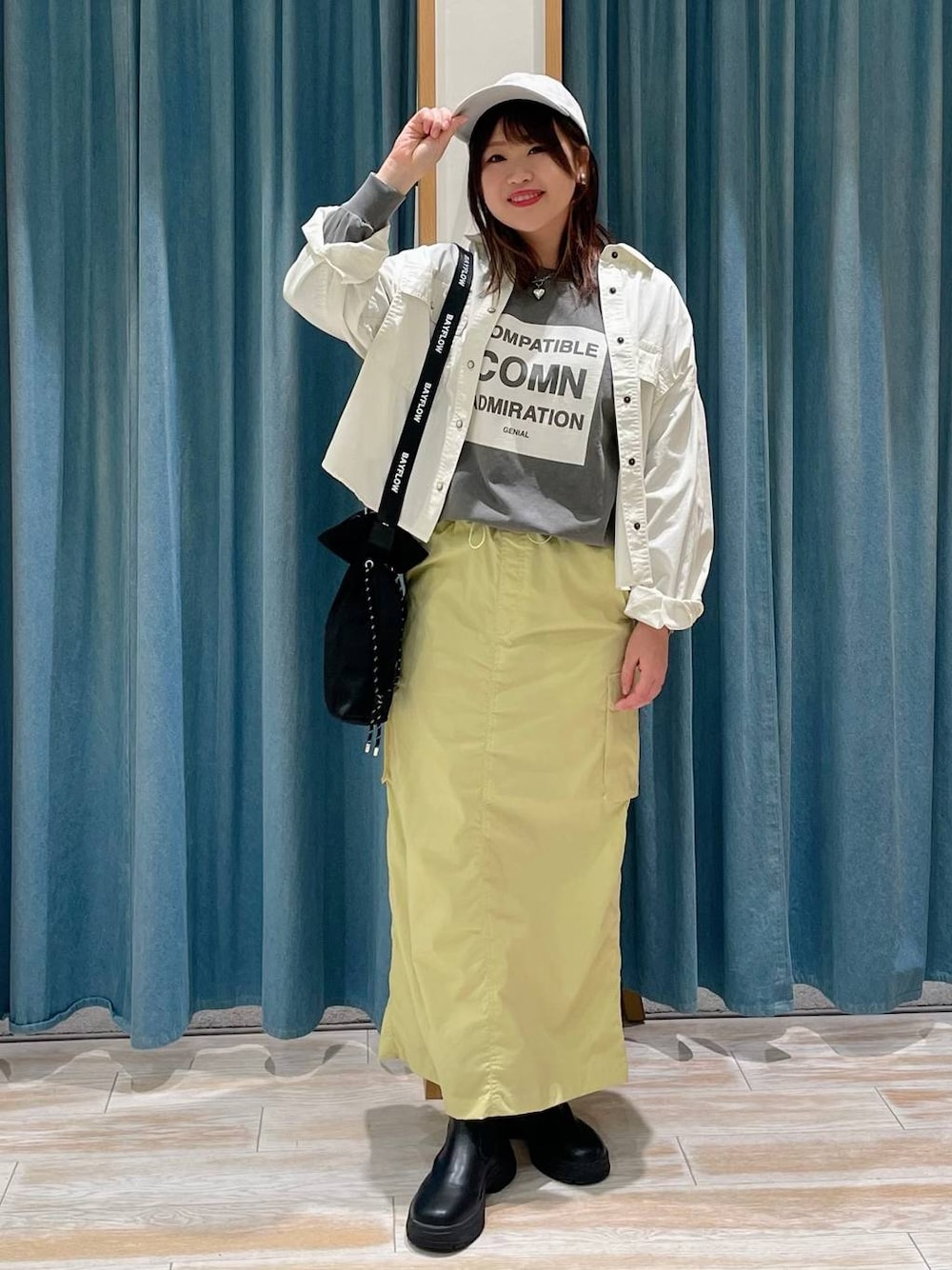 BAYFLOW定番アイテムでのコーデ⋆͛🦖⋆͛❤️ ロンTは生地もしっかりしていて ワイドシルエットになっています🌼*・ シャツはゆったりしているけど ハリ感もあり、 サイズもSのショート丈と Mのロング丈と選べます♩*゜ ドロストカーゴスカートは 足さばきがしやすいスリット入り✨ そしてストレッチも効いていて 速乾性もあるので、梅雨時期にも 大活躍します💗