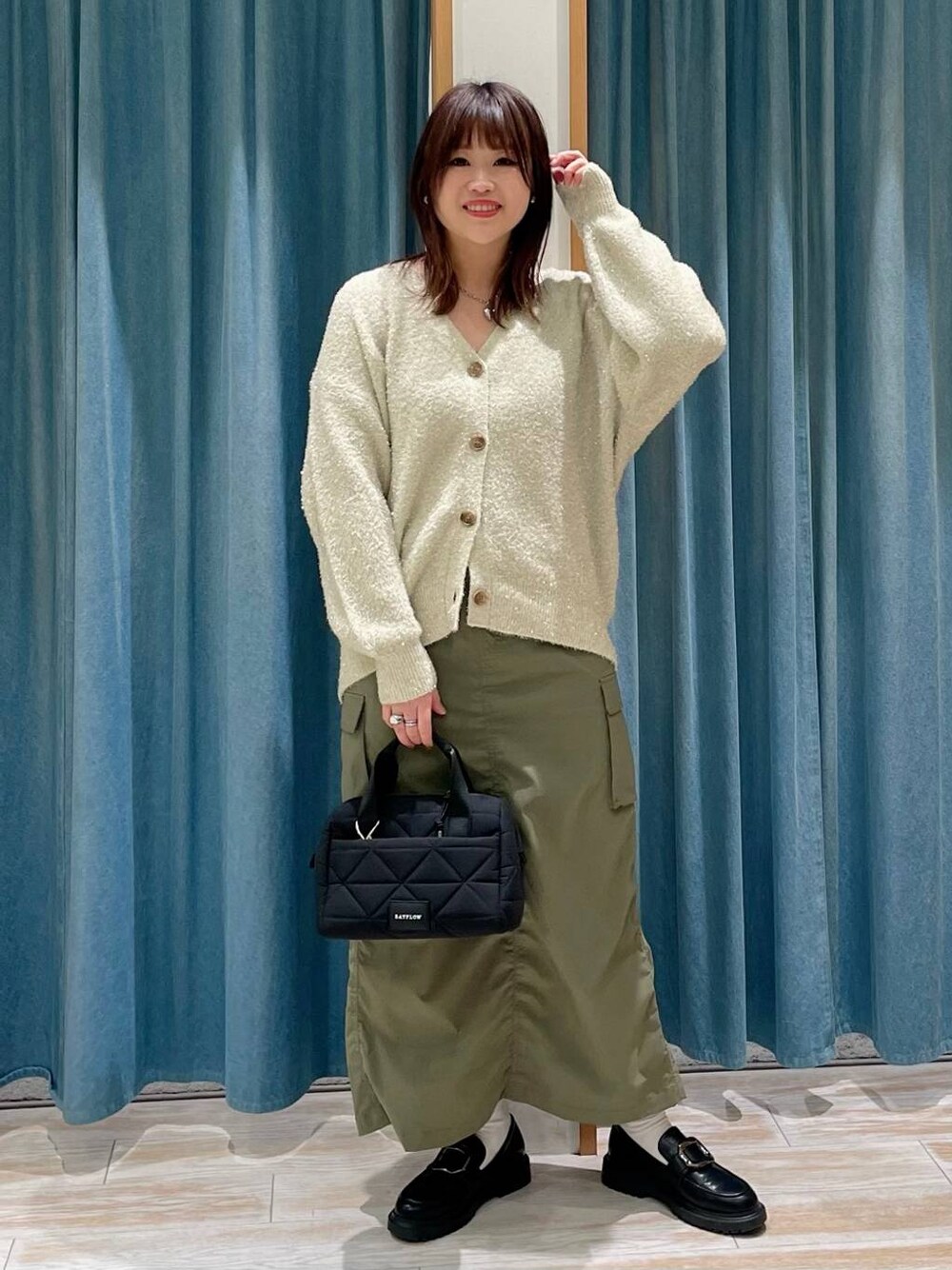 スカートは伸縮性もあって 足さばきもGoodです! シンプルにカーディガンを1枚着として 着用してもオススメです🧡