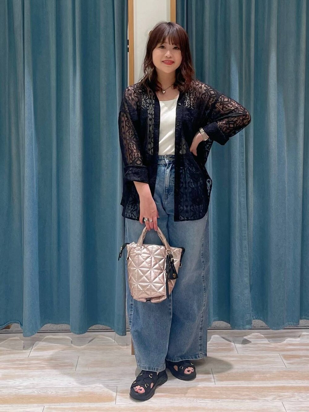 シンプルなデニムに さりっとしたレースシャツで 大人コーデ🖤 ブラックのレースは いい女感だしてくれますよね🥺🖤🤍