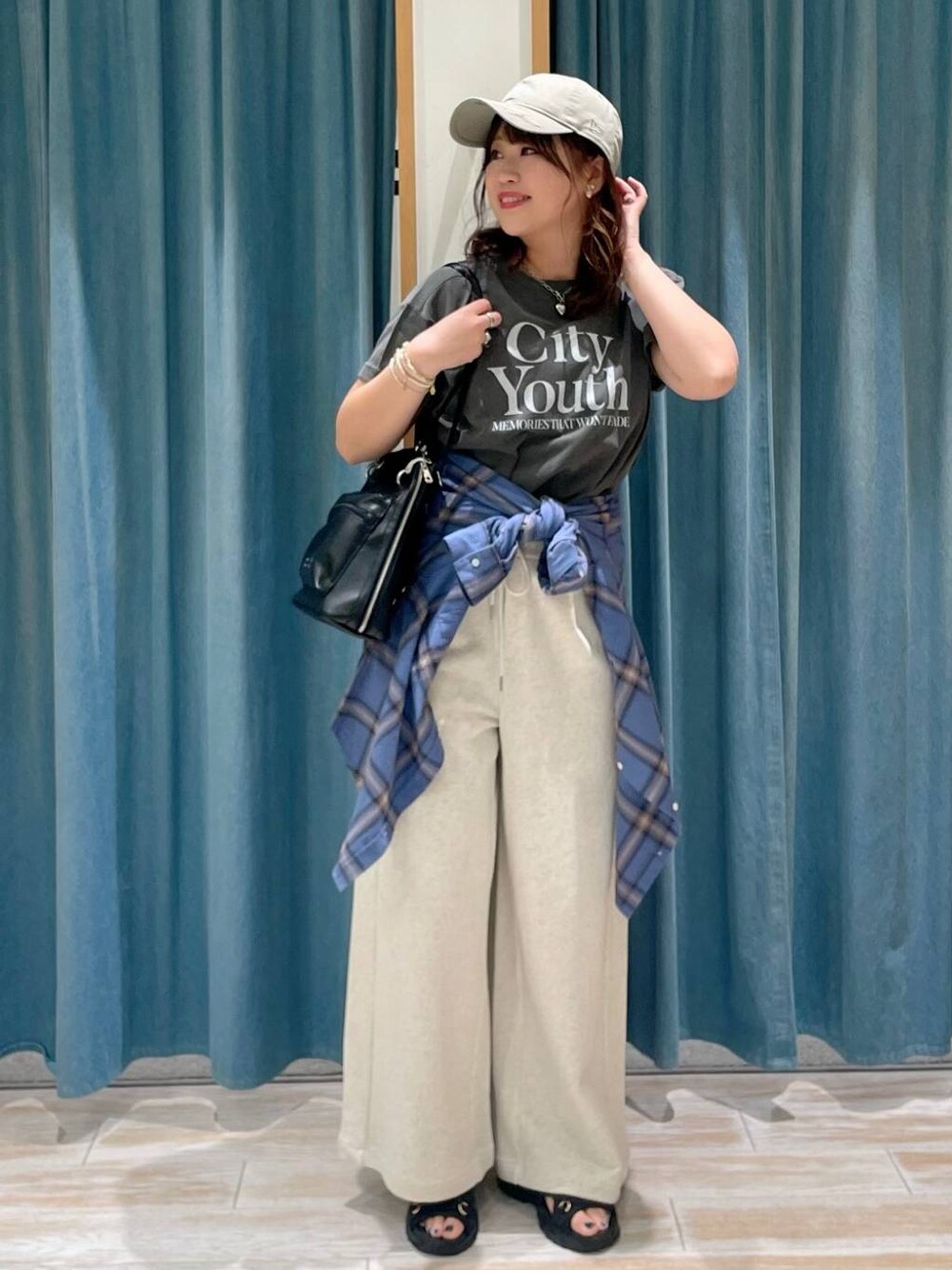 これからの季節のTシャツスタイル🌼 まだ寒暖差もあるので 暖かい時はTシャツ、 寒くなったらシャツを羽織るスタイリング🌈 パンツはスウェットでゆるっとですが パジャマ感がでにくいので 楽ちんだけどトレンド感もでます👍🏽