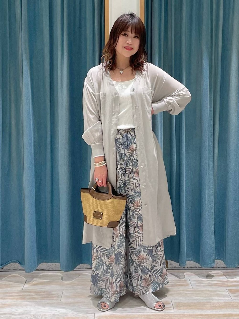 akari(BAYFLOW モレラ岐阜)のキャミソール「【bijorie】カップ付きバッククロスキャミ/NEW BASIC 25SS」を使ったコーディネート