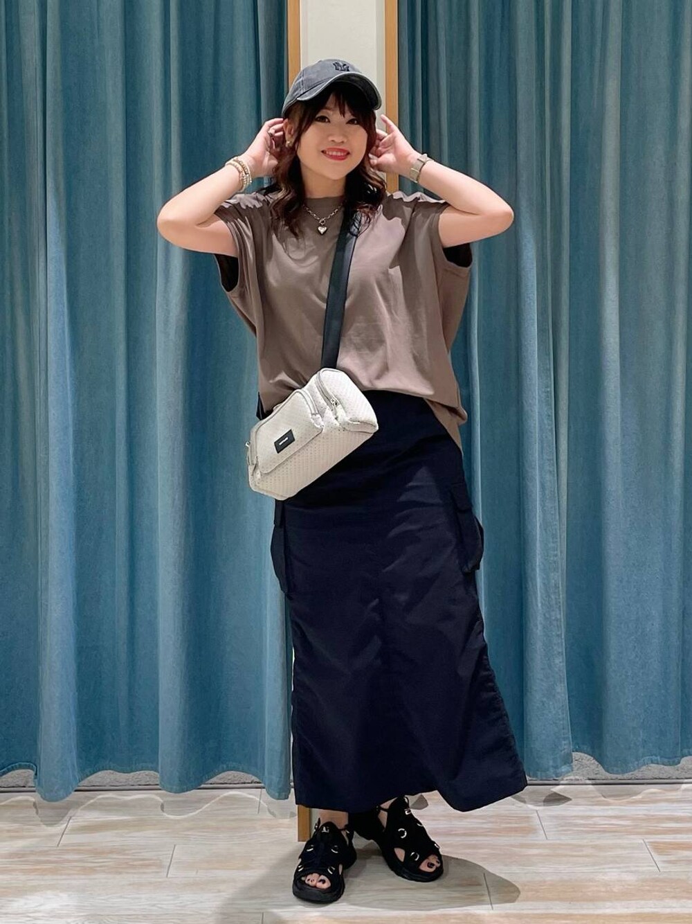 akari(BAYFLOW モレラ岐阜)のTシャツ/カットソー「[丸みのあるバックシルエット]シルケットドルマンショートスリーブT」を使ったコーディネート