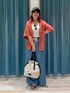 おでかけコーデ🌞❤️ 日差しが強い時は サングラス😎も🩷 サラッと羽織れるシャツは アイロン不要でお洗濯も楽ちんです😆