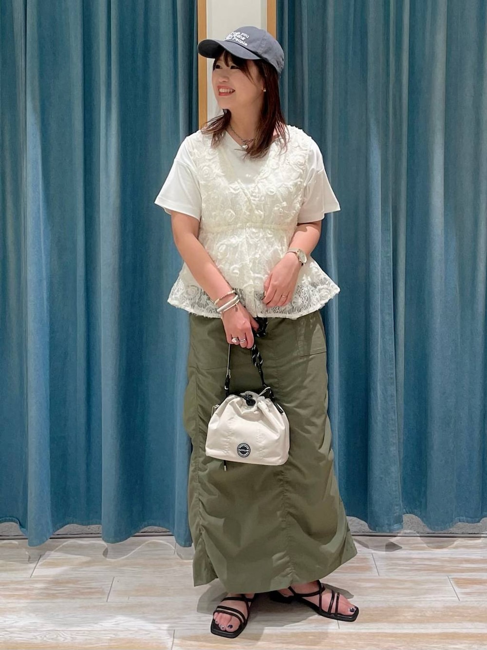 レースベストってフェミニンにも 最適なんだけど、カジュアルな ベイカースカートで合わせると 甘辛でかわいい💞