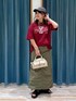 ストレッチもきく、ベイカースカート✨ 赤とカーキの組み合わせ可愛くて オススメです✨