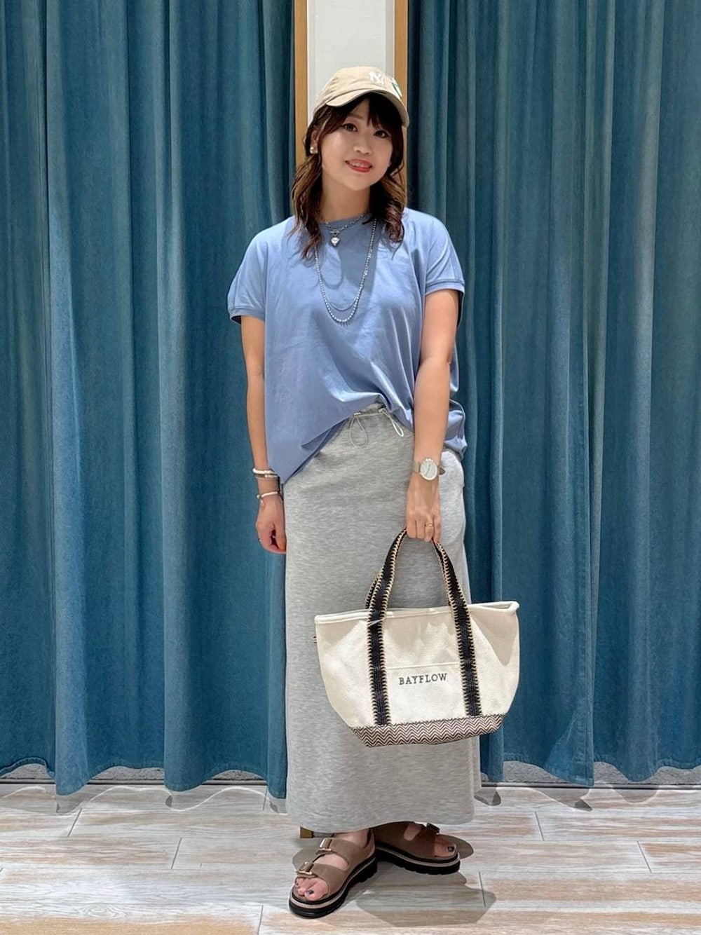akari(BAYFLOW モレラ岐阜)のトートバッグ「[A4サイズ収納可]25SヘリンボンロゴトートM」を使ったコーディネート