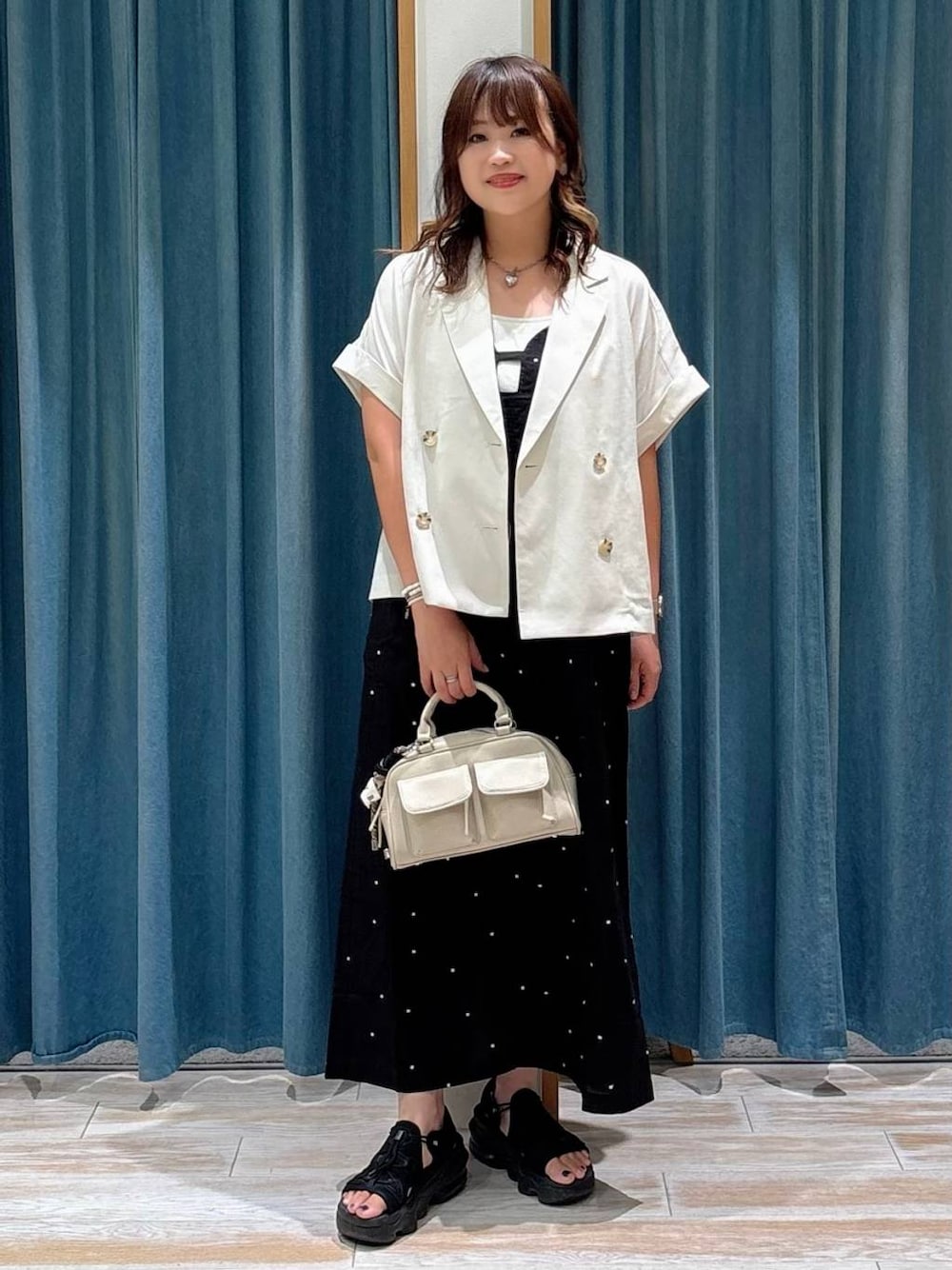 トレンド感のあるミニドット刺繍デザインの ワンピース🌸 生地の用尺をたっぷりつかったキャミワンピースで 着用しやすいようサイドにファスナーをつけ、 背中側にシャーリングゴムを入れた仕様です✨ 肩のアジャスターで長さ調節可能に なっています🫶🏼