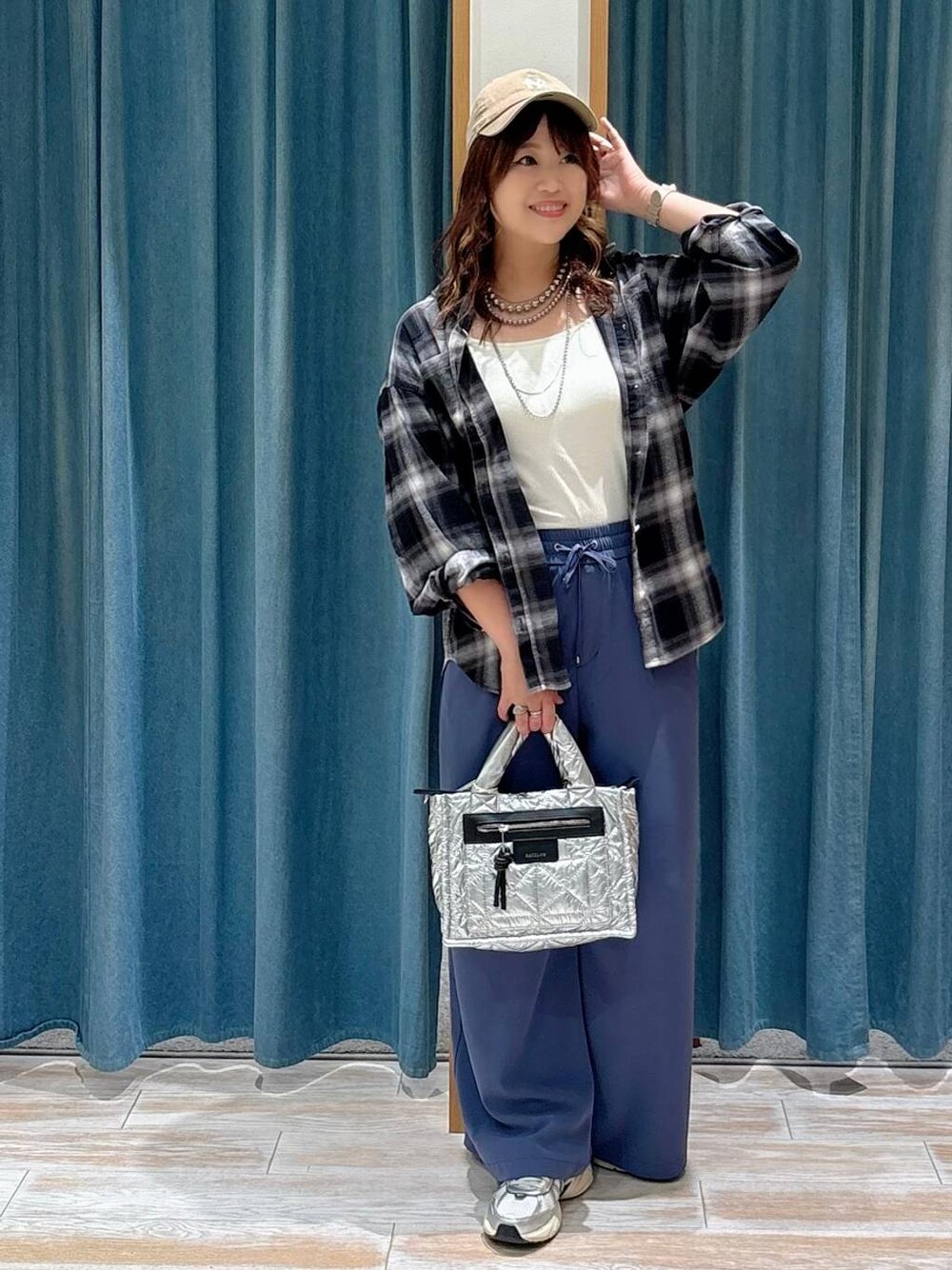 akari(BAYFLOW モレラ岐阜)のキャミソール「【bijorie】カップ付きバッククロスキャミ/NEW BASIC 25SS」を使ったコーディネート