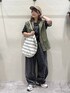 akari(BAYFLOW モレラ岐阜)のトートバッグ「オリジナルニコロゴボーダートートバッグ/Lサイズ」を使ったコーディネート