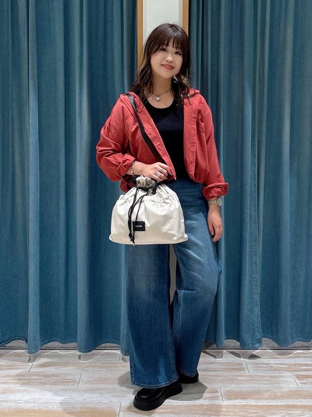 akari(BAYFLOW モレラ岐阜)のトートバッグ「3WAY撥水アジャスタートート」を使ったコーディネート