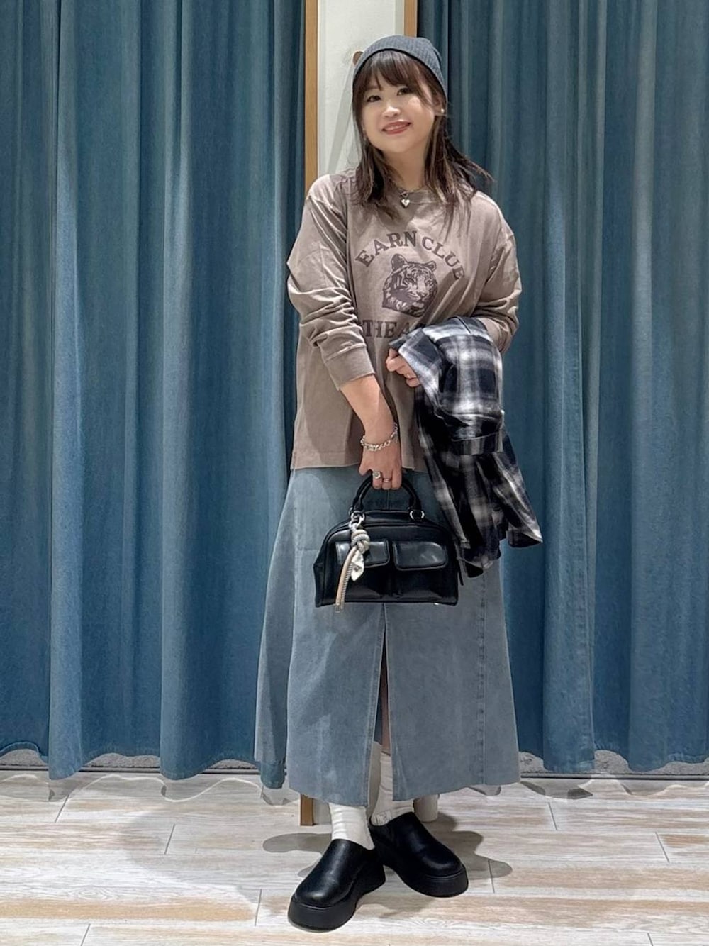 akari(BAYFLOW モレラ岐阜)のシャツ/ブラウス「[薄手生地で長く着られる]アソートチェックBIGシャツ」を使ったコーディネート