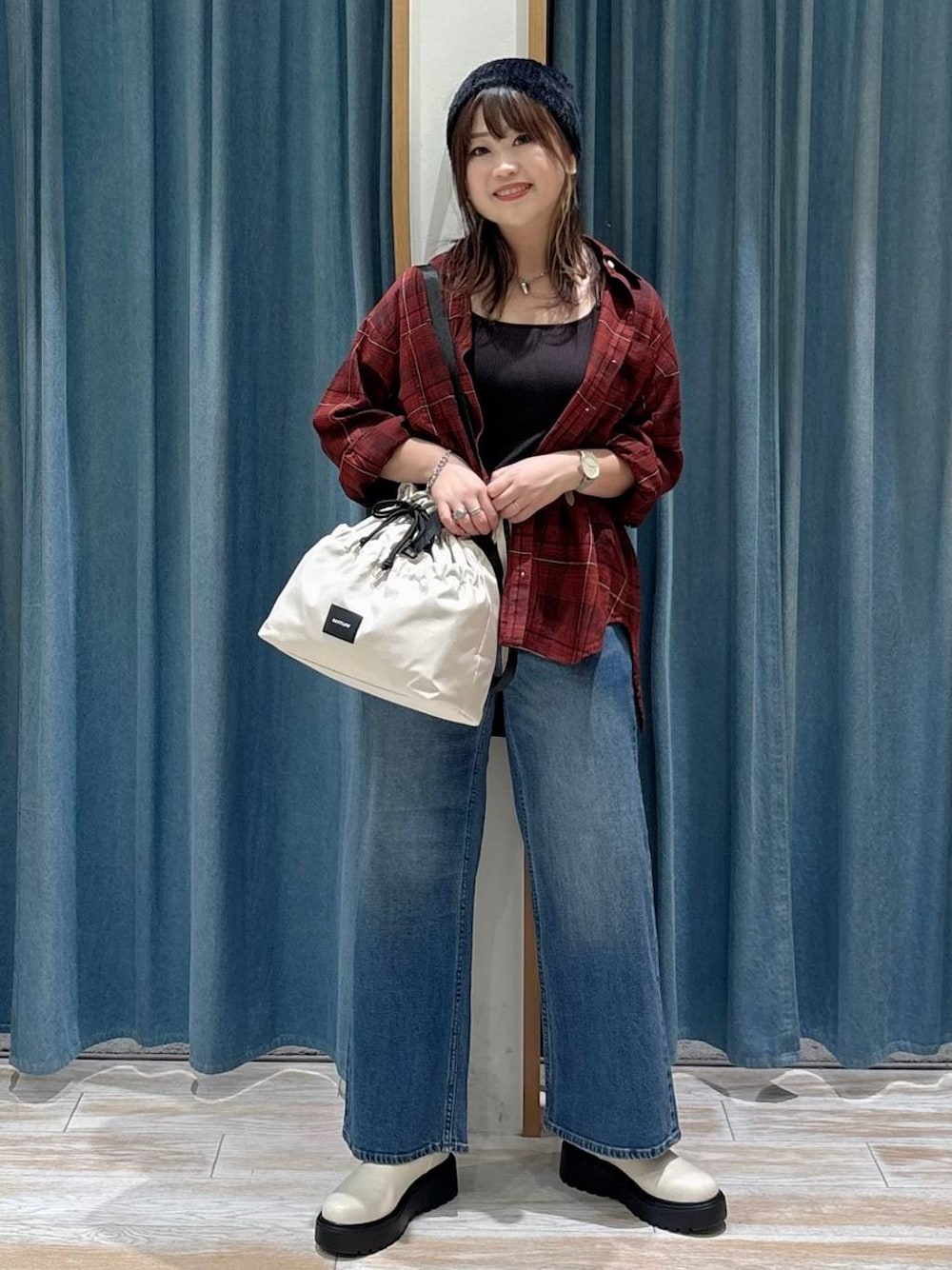 akari(BAYFLOW モレラ岐阜)のキャミソール「【bijorie】カップ付きバッククロスキャミ/NEW BASIC 25SS」を使ったコーディネート