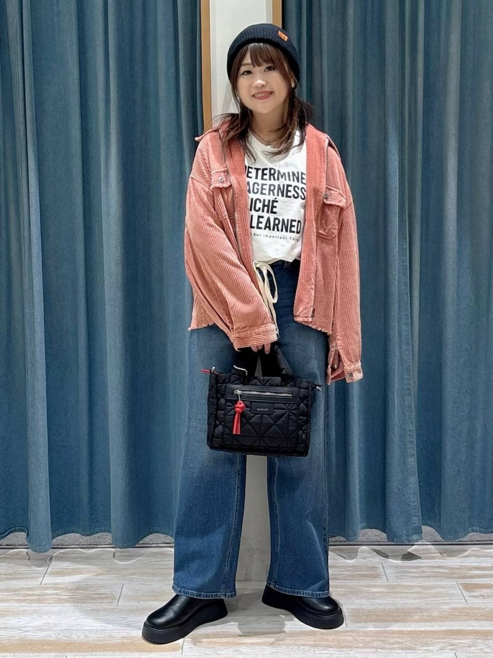 akari(BAYFLOW モレラ岐阜)のショルダーバッグ「[500mlペットボトルが入る]キルトパッファースクエアショルダー」を使ったコーディネート
