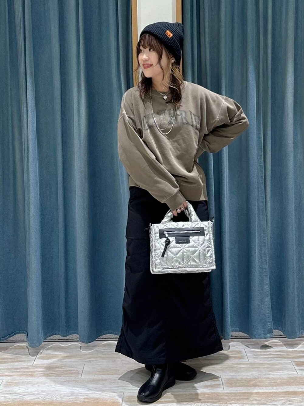 akari(BAYFLOW モレラ岐阜)のショルダーバッグ「[500mlペットボトルが入る]キルトパッファースクエアショルダー」を使ったコーディネート
