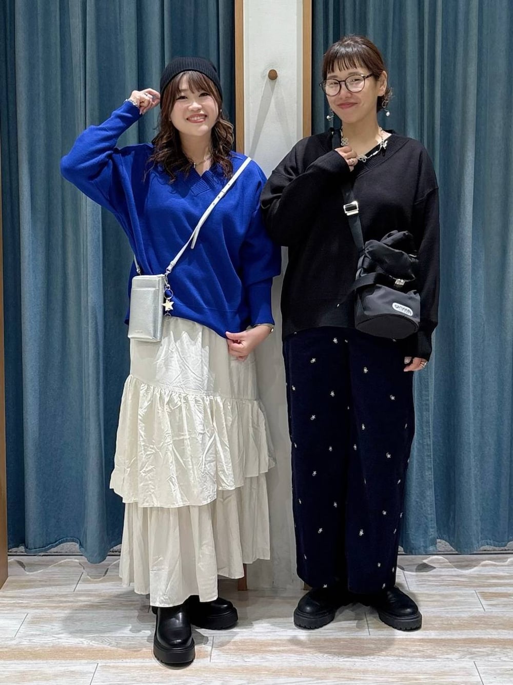 mocoさんと📸 トップスのVネックニットは オーバーサイズで、ゆるっと着用できます💙