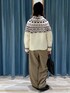 ニットがとっても可愛くて冬が楽しくなるアイテム💝 膨らみのある素材で ノルディック柄がキュート🌼.* 首元まで続く編み柄だから 1枚でコーディネートの主役になります🥂 パンツは 冬らしい表面がピーチがかった柔らかい素材感🤎 タックコクーンシルエットで ウエストゴム+内側に紐付きで調節が可能だから とっても楽ちんです✧‧˚