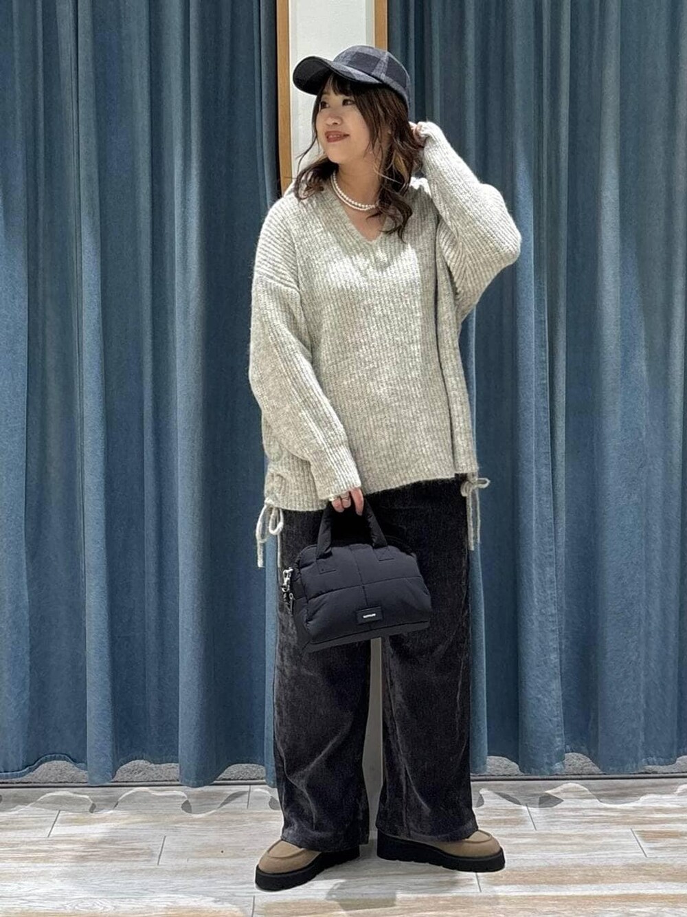 ゆるゆるっとカジュアルコーデ🌟 トップスは ゆったりとしたサイズ感で、 Vネックが抜け感のでるニットアイテムです💖 インナーにTシャツやシャツを着用して 真冬でも着用可能です!