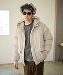 メンズライクコーデ🌿 アウターは ボリュームのあるフードが特徴的な、 機能中綿ブルゾン🫶🏼 めちゃくちゃ軽くて960g!!! ふんわり羽織れるのに保温力抜群です!
