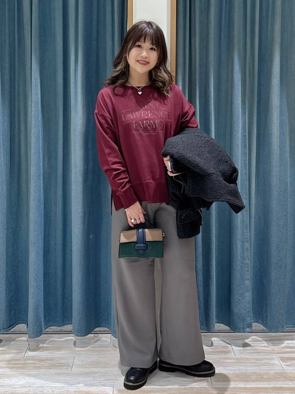 シンプルだけど 色物コーデ❤️ 刺繍ロゴがポイントの適度な厚みで スウェット感覚で着られるトップス✨ トップスもボトムもセールアイテムです🫶🏼