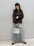 GLOBAL WORKコーデ💖 ◾︎デニム デニムはウエスト伸びて楽ちん🌈 裾にかけてやや広がって見えるデザインで、 膝回りすっきり◎ キレイめにも使えます✨
