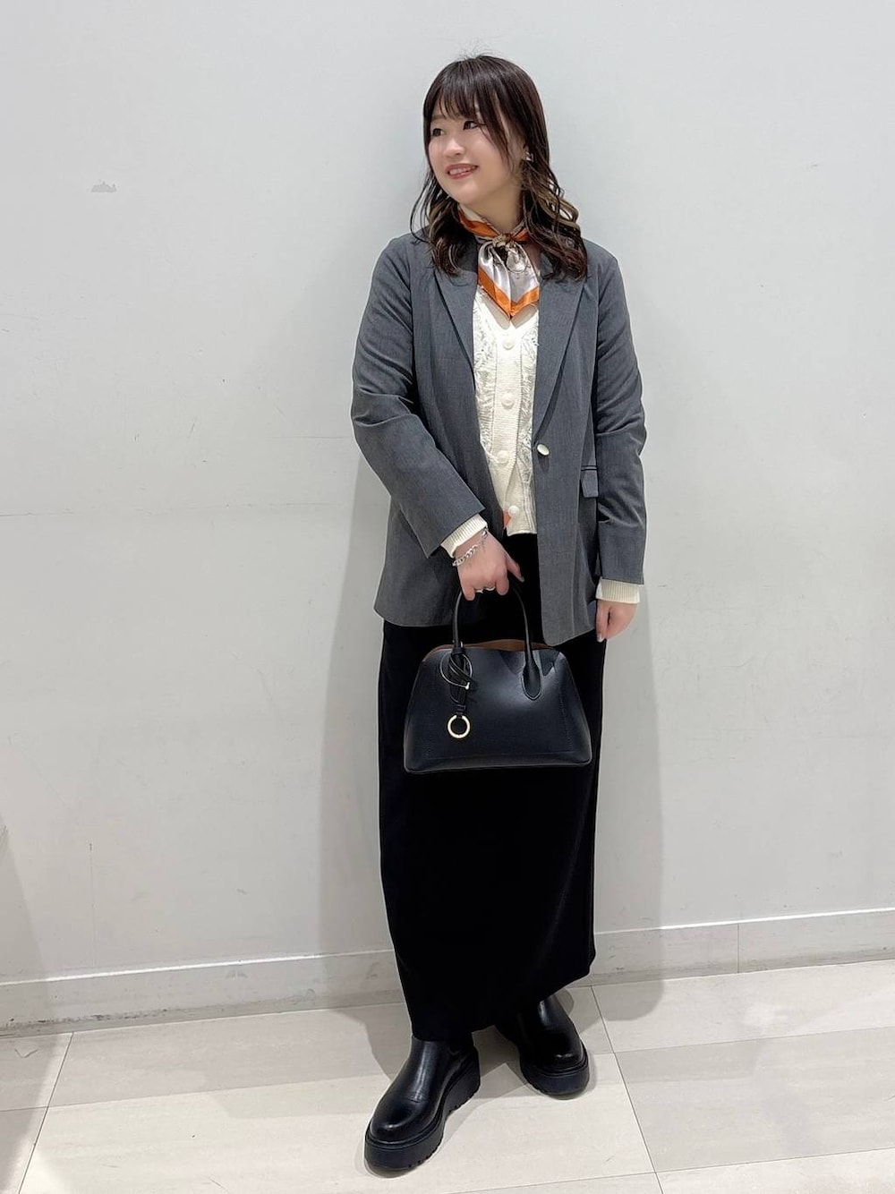 GLOBAL WORKのキレイめコーデ💙 ◾︎ジャケット サイズはいつもと同じでOKです✨ 程よいゆったりとしたシルエット ストレッチが効いているので長時間の着用も ノンストレスですごせます🥰 洗濯機で洗えるのも嬉しいポイント💡💕 セットアップで着るのもオススメですが スカートやカーディガンの上にジャケットも オススメです🫶🏼