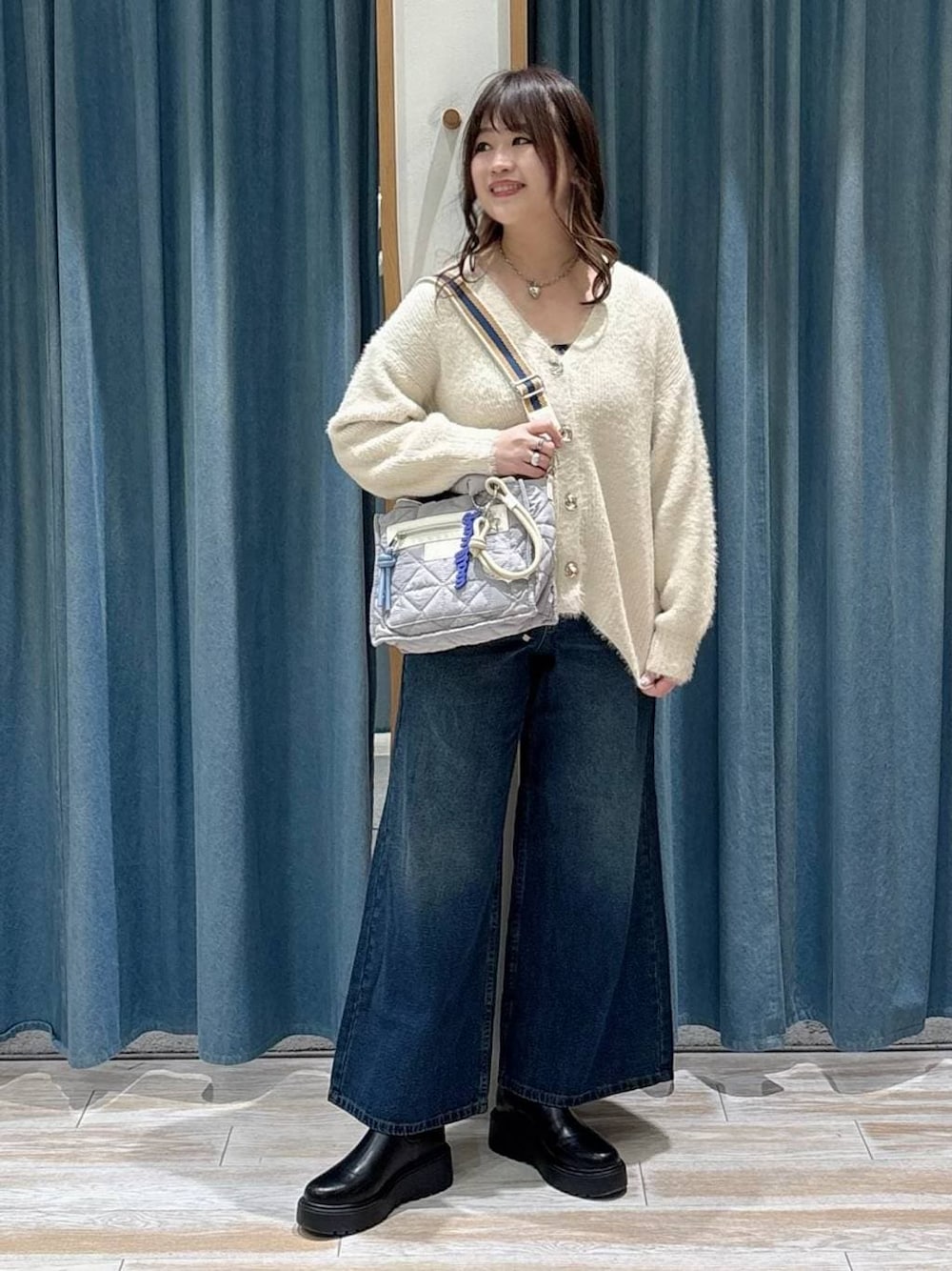 まだまだ寒いので 今着たいコーデ🙂↕️🩷 ◾︎カーディガン 毛足長めのシャギーカーディガンは 滑らかな肌触り♡♡ オーバーサイズなので お尻まで隠れます😍 ◾︎デニム ワイドシルエットだから 足のライン拾わない✨