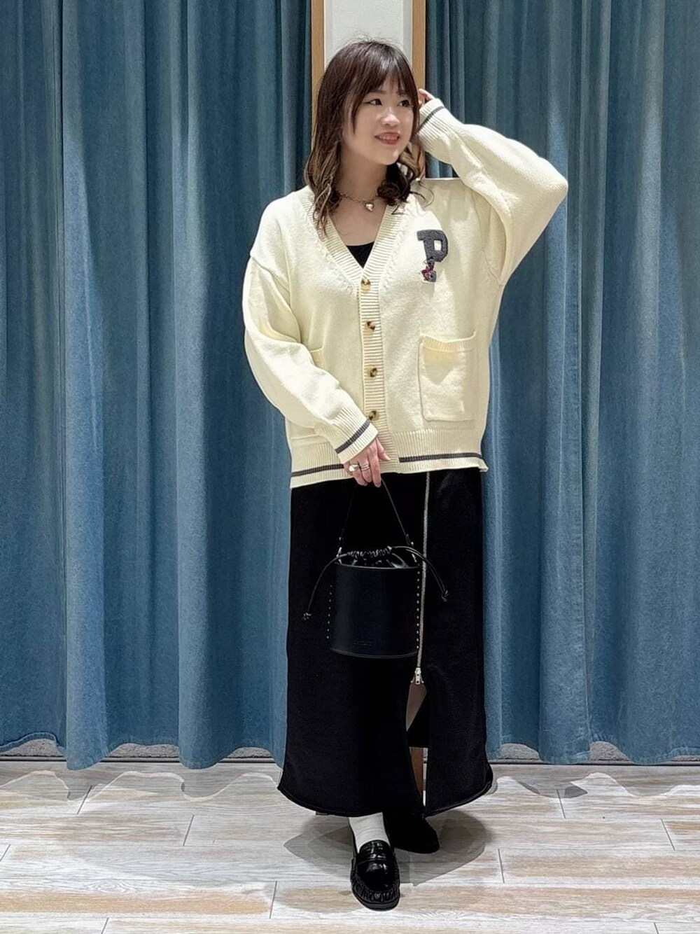 きれいめカジュアルコーデ🌈 ◾︎別注ワッペンカーディガン ゆったりとしたサイズ感で中にもしっかり 着込むことができるカーディガン💖 別注のワッペンがポイント💡💕 春になったら中を薄手にして 着用できます🫶🏼