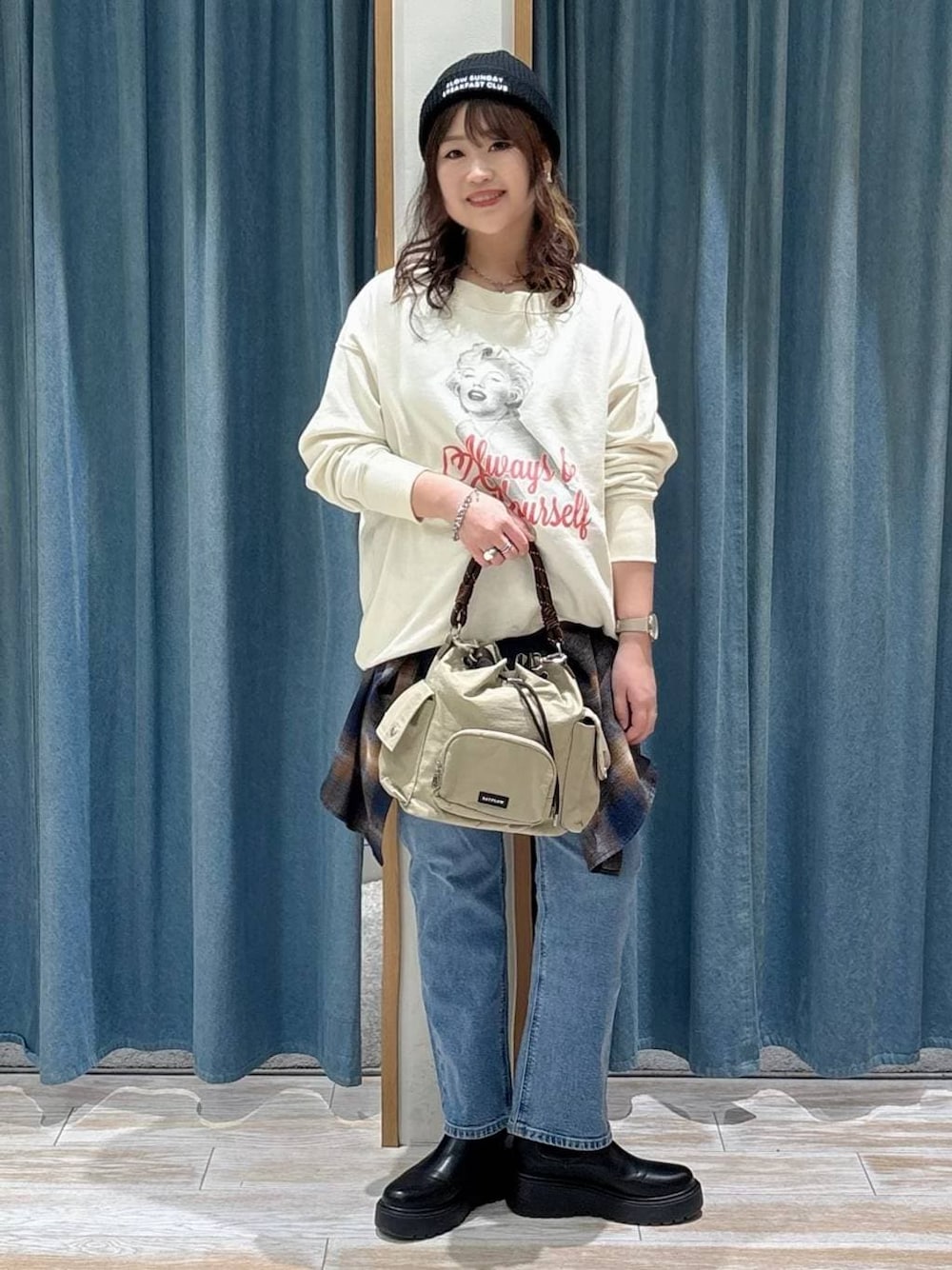 カジュアルコーデ🌷 ◾︎トップス マリリン・モンローの生誕100周年の フォトグラフコラボアイテム😊 BIGシルエットのチュニック丈で、 裾にかけて丸みがあって柔らかい印象に✨ 抜け感のあるボートネックもポイント💡💕