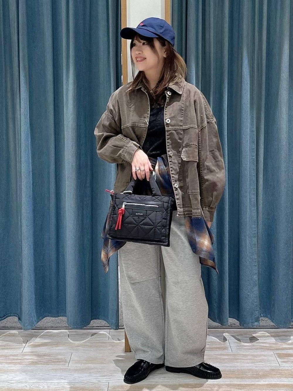 akari(BAYFLOW モレラ岐阜)のショルダーバッグ「[500mlペットボトルが入る]キルトパッファースクエアショルダー」を使ったコーディネート