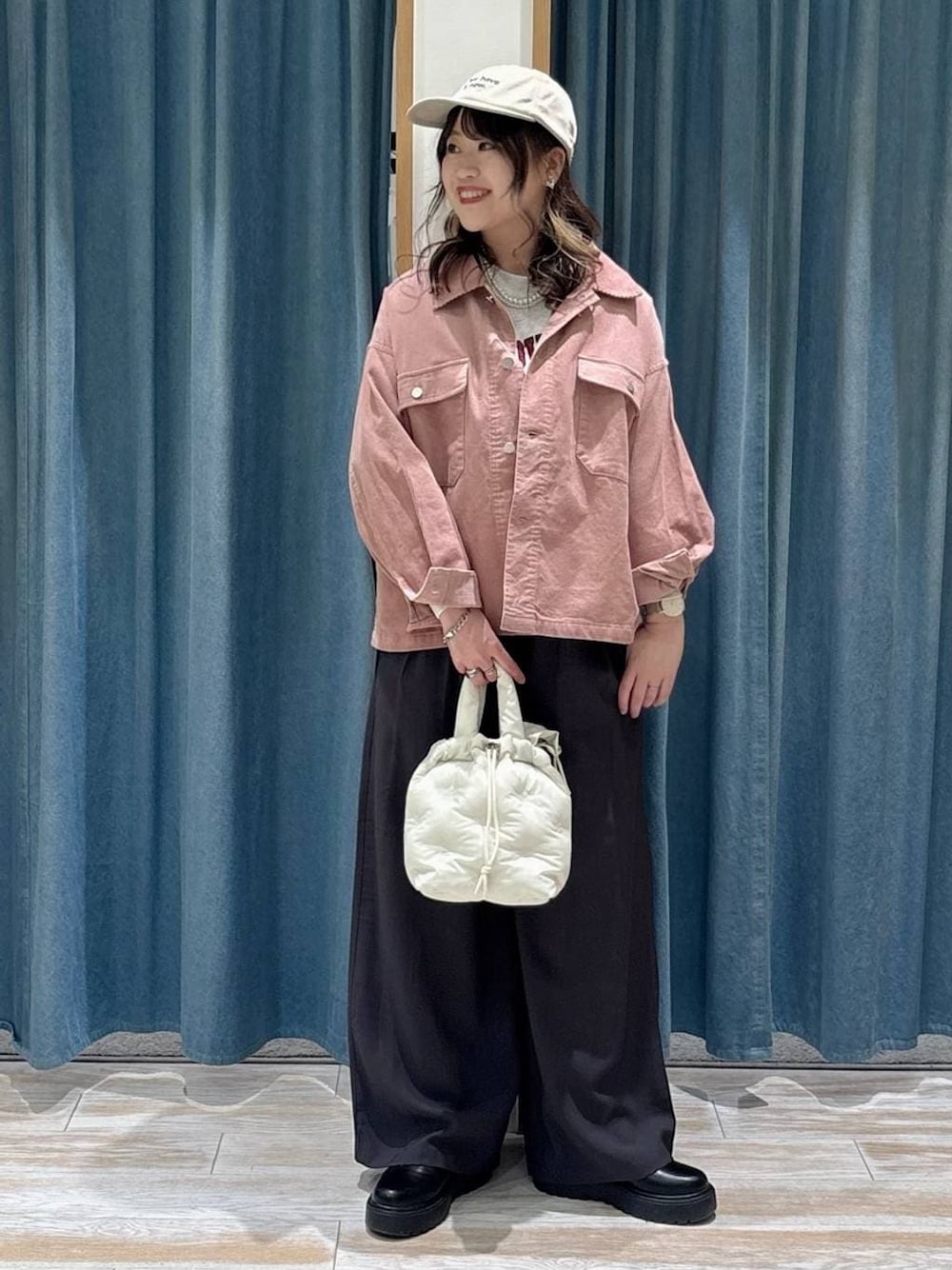 akari(BAYFLOW モレラ岐阜)のキャップ「コーデュロイ刺繍キャップ」を使ったコーディネート