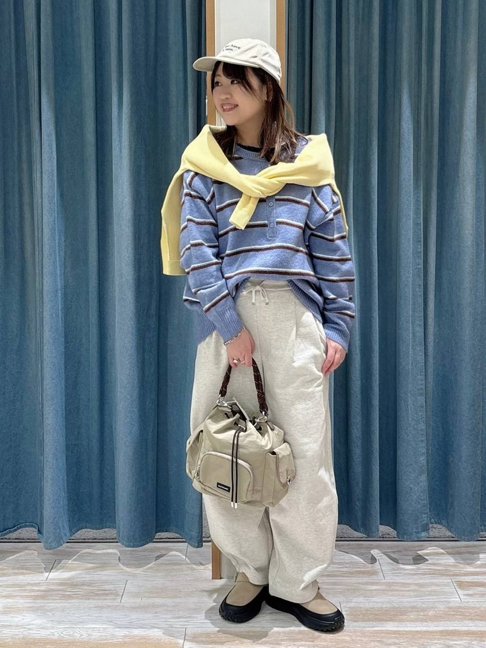 春先取りコーデ🌸 ◾︎トップス 2wayタイプのボーダーニット🌈 ヘンリーネックだから、寒い時は ハイネックをプラスワンしても おすすめです✨ ◾︎パンツ バレルシルエットのスウェットパンツ✨ ハリ感もあってシワになりにくいのに ウエストゴムだから楽ちん❤️