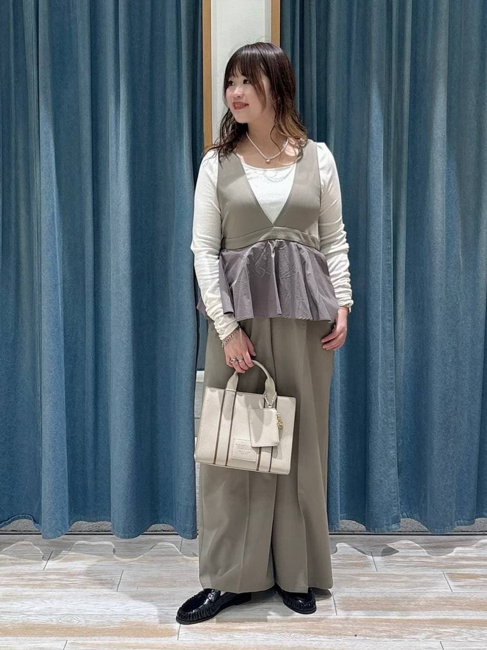 akari(BAYFLOW モレラ岐阜)のネックレス「ステンレスハートパールネックレス」を使ったコーディネート
