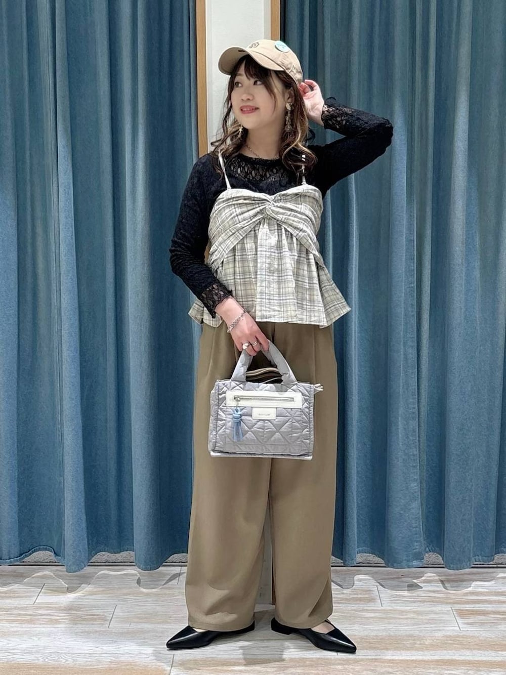akari(BAYFLOW モレラ岐阜)のショルダーバッグ「[500mlペットボトルが入る]キルトパッファースクエアショルダー」を使ったコーディネート