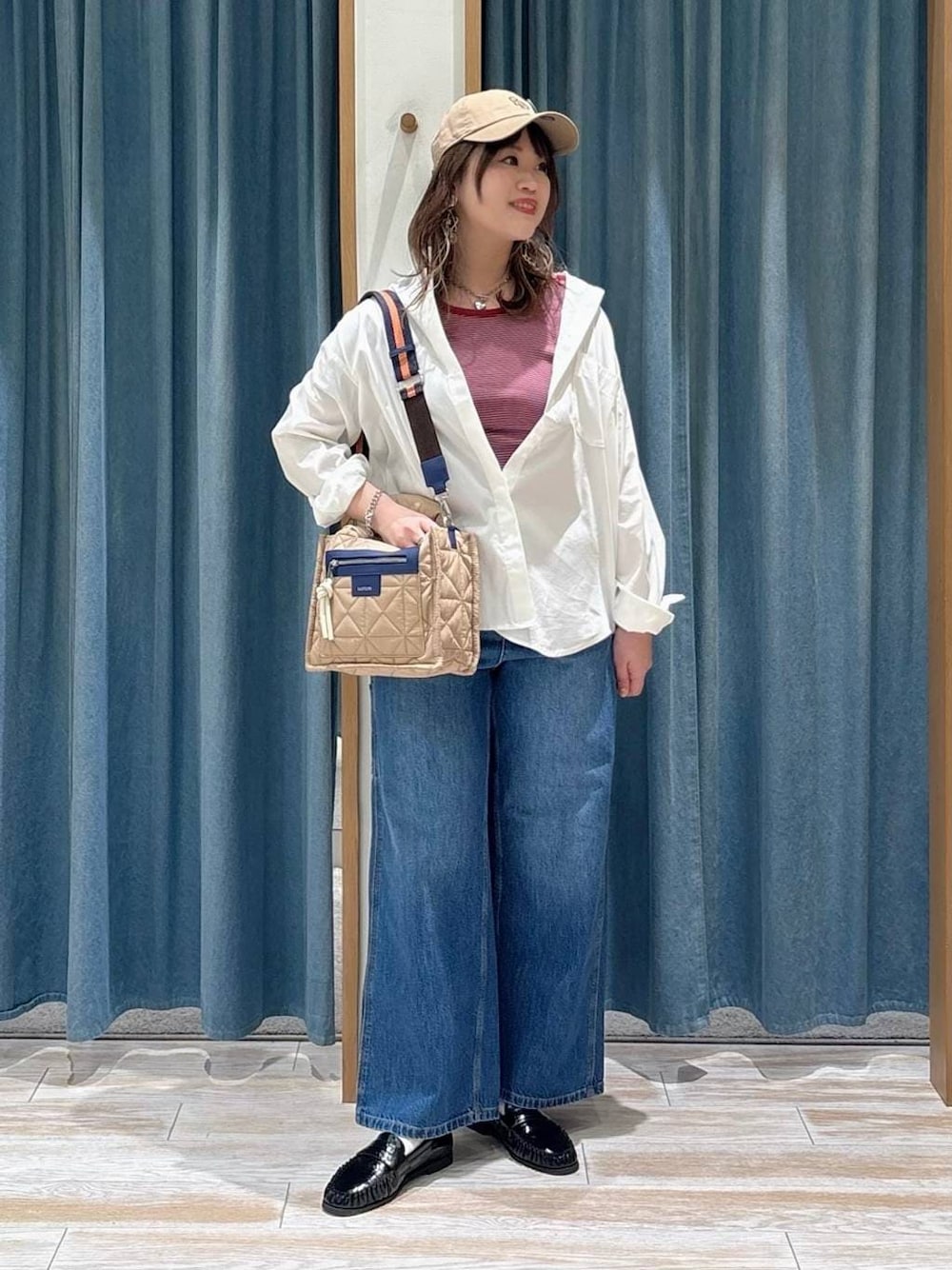 akari(BAYFLOW モレラ岐阜)のショルダーバッグ「[500mlペットボトルが入る]キルトパッファースクエアショルダー」を使ったコーディネート