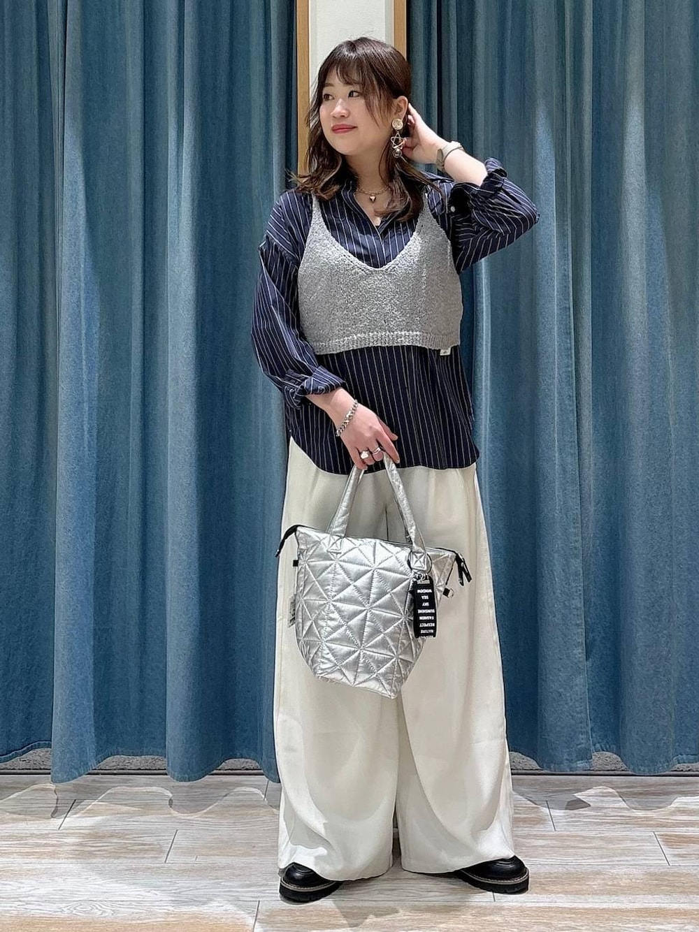 カジュアルコーデ🌵🩷 ◾︎シャツ ストライプシャツ大人気なんです🌈 BAYFLOWの中では大きすぎないサイジングなので 細身の方にもおすすめです🙌🏼 ストレッチ入りなので羽織りも楽ちん🎶 ビスチェ合わせも可愛いので おすすめです💖!!