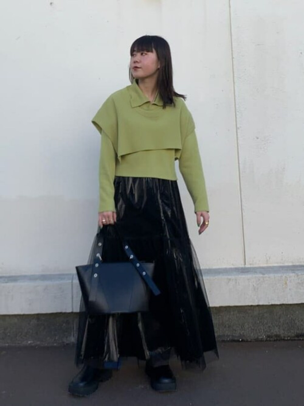 袖口が2wayで使えるニットをメインに コーディネートを組みました! スカートもチュールを取り外して バラバラでもお使いいただけます!