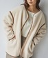 急に寒くなった今の時期にピッタリのボアコート❤︎ ノーカラーでパイピングデザインが女性らしい印象になるのでワンピースとの相性も抜群です◎