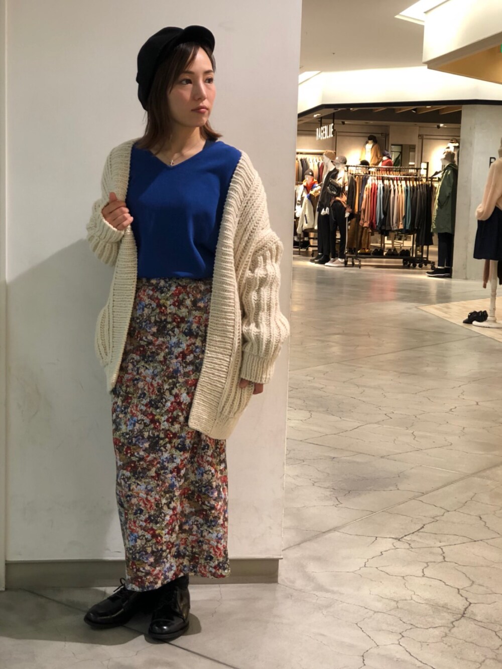 この時期大活躍のニットカーディガン♡ 柄物のスカートでコーディネートしてみました‼︎