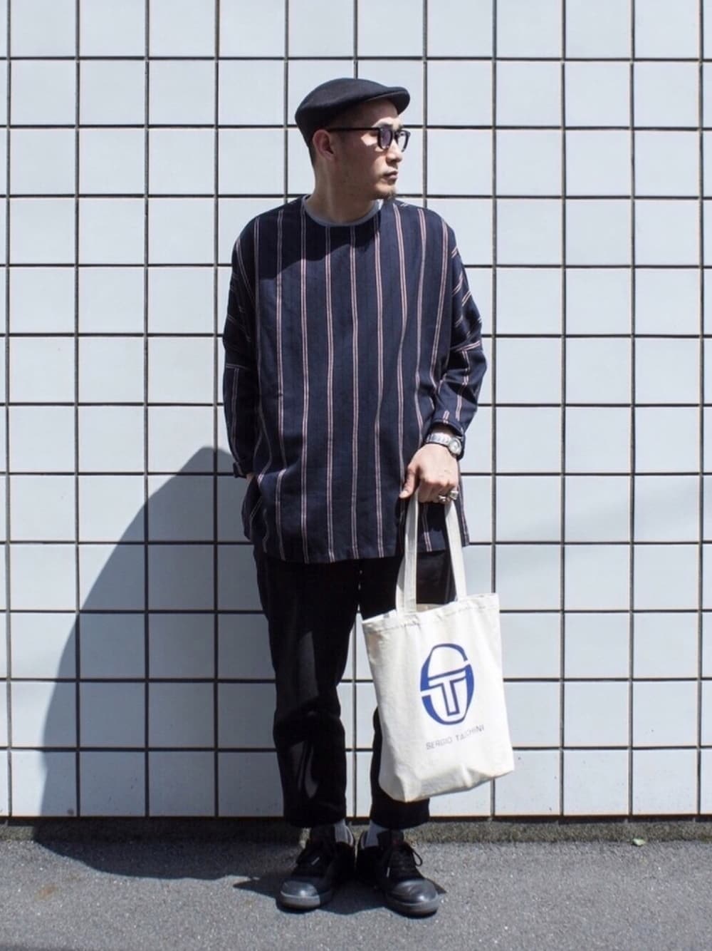 akustoのトートバッグ「セルジオのオンラインで商品を購入するともらえますよ◎」を使ったコーディネート