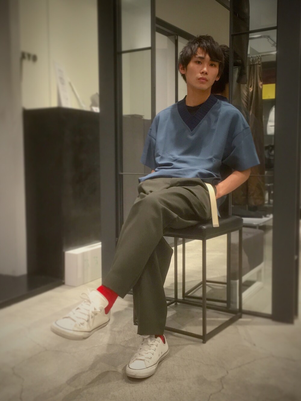 石田優気のシャツ/ブラウス「Vネックプルオーバー」を使ったコーディネート