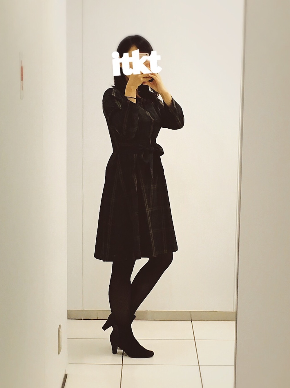 いときちのワンピース「チェックウエストリボンワンピース」を使ったコーディネート