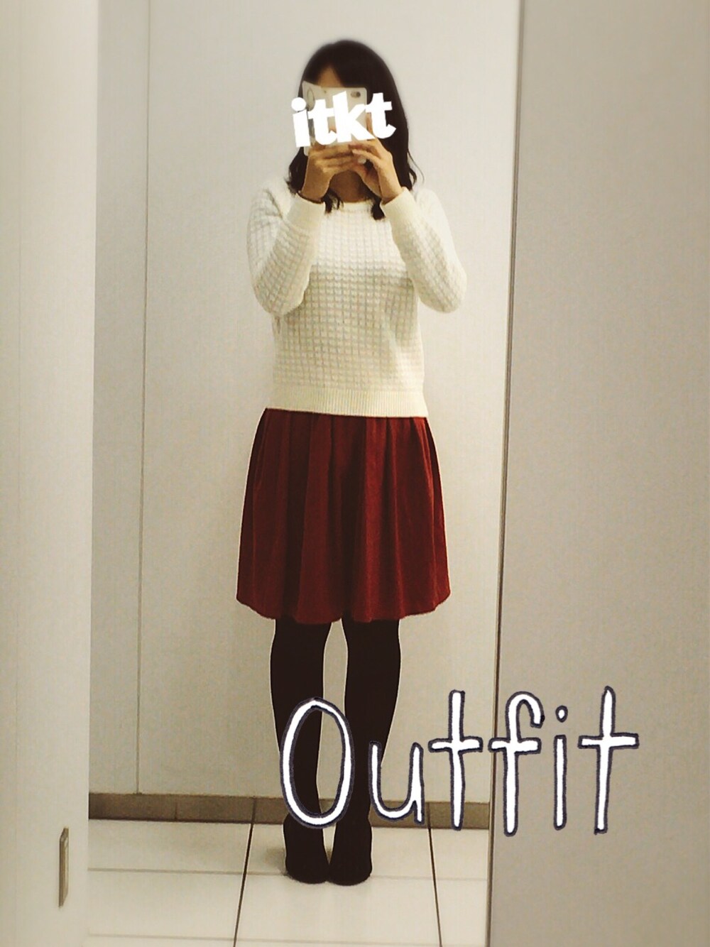 昨日のコーデ。 久しぶりに赤スカート履きました。