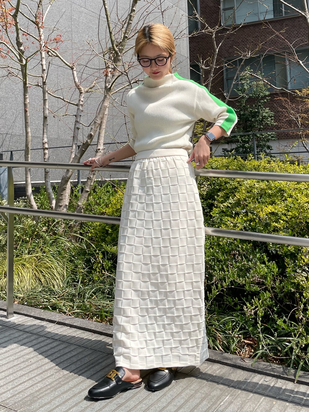 yuka nakamori(Lui's/EX/store なんばCITY店)のニット/セーター「スリーブ配色ラインニット」を使ったコーディネート
