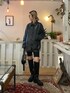 ブラック系のカバーオールを着用したレディースの冬コーディネートの2枚目の写真