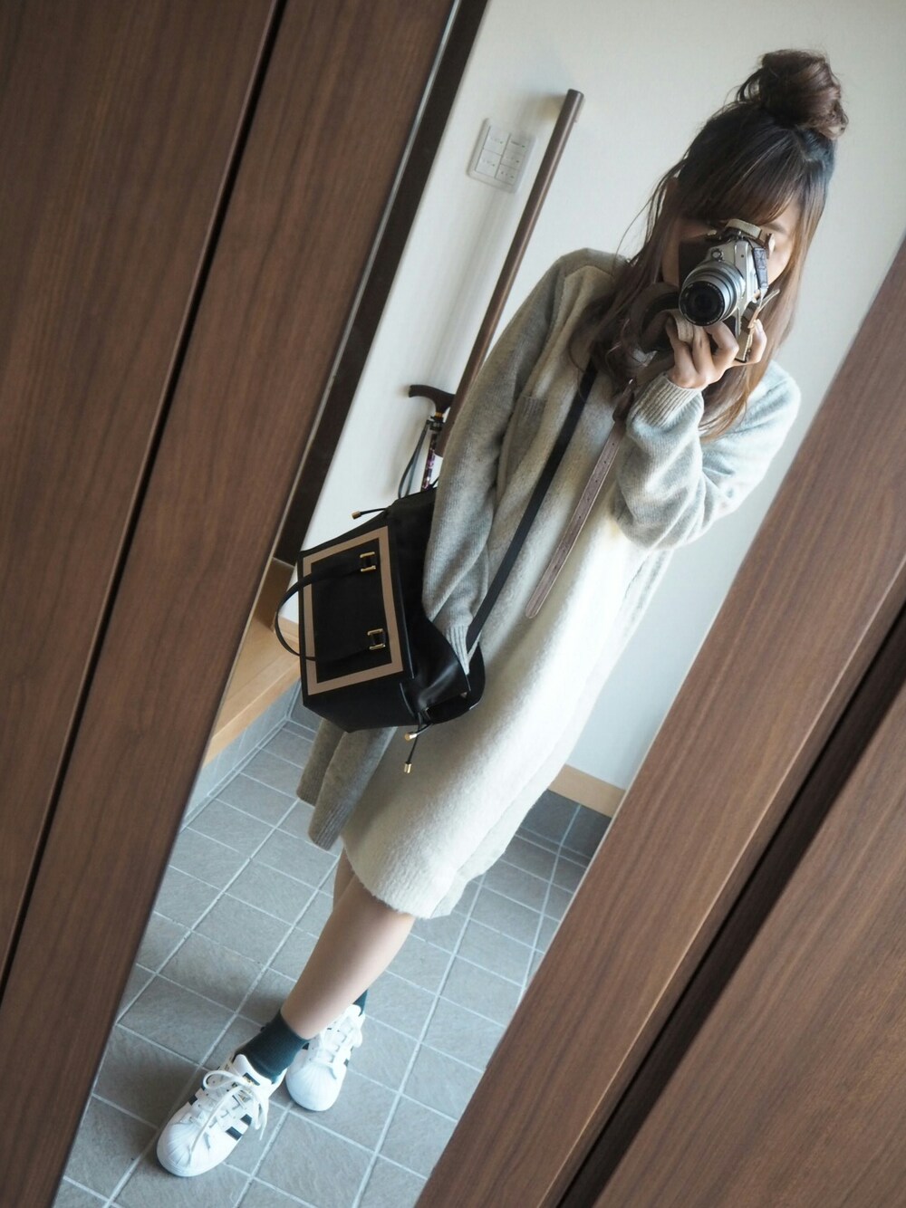 昨日のコーデ。 コートはネイビーのダッフル着ました♪ 土曜日に親不知を抜いて左の頬腫れてます(笑) 縫ったし痛いしで口が2cmしかあかなーい!! そんな痛々しいわたしに親友から少し早いお祝いいただきました♥