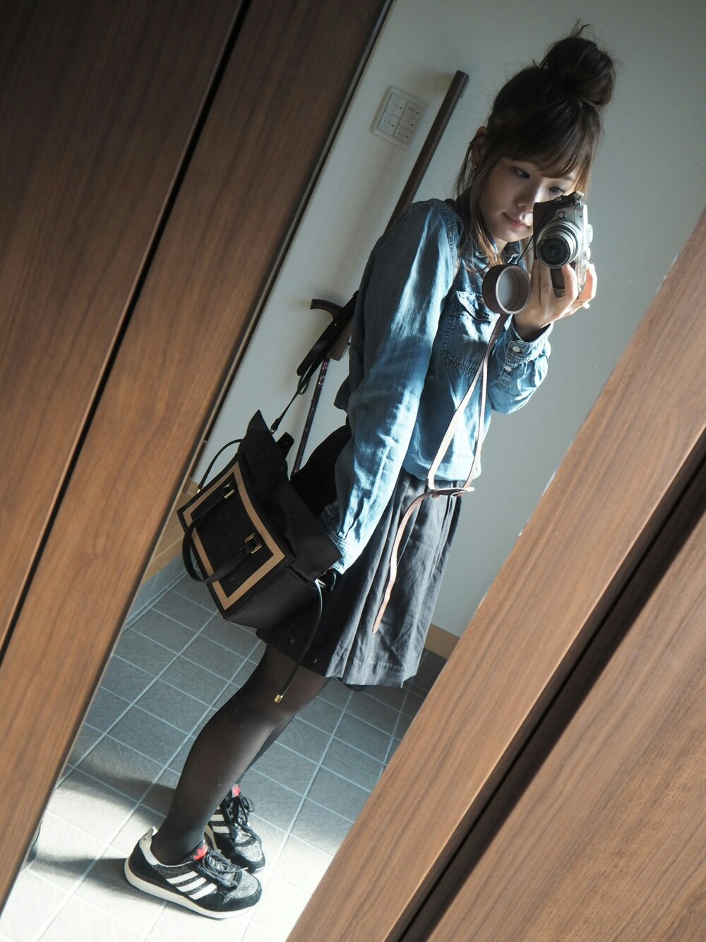 日曜のコーデ。 日中はあったかかったのでヒートテックにデニムシャツ!里奈ちゃんコラボのショルダーどんな服装にも合いますね♥ 1日がお誕生日だったので友達がサプライズしてくれました\(^^)/